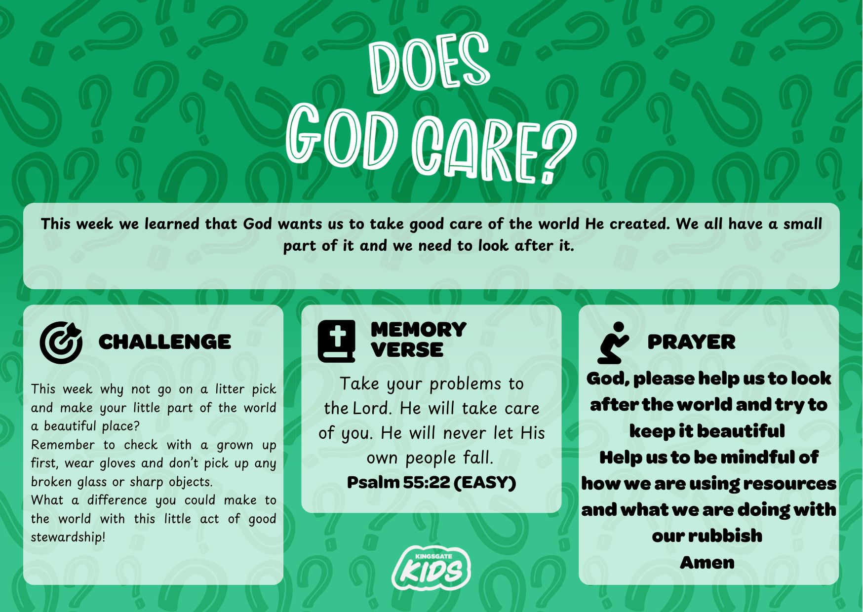 Help us to be mindful of how we are using resources and what we are doing with our rubbish.